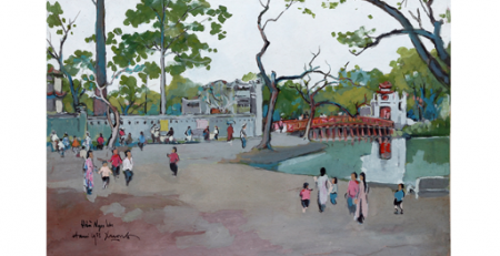 Tác phẩm “Đền Ngọc Sơn” (bột màu trên giấy, 45,8cm x 61,8cm, 1953) của Lê Văn Xương. TP – Họa... read more